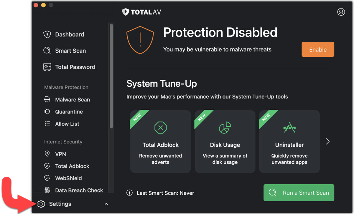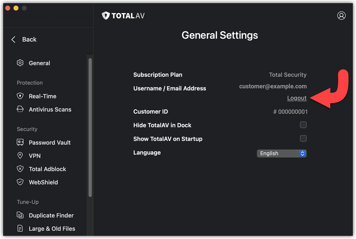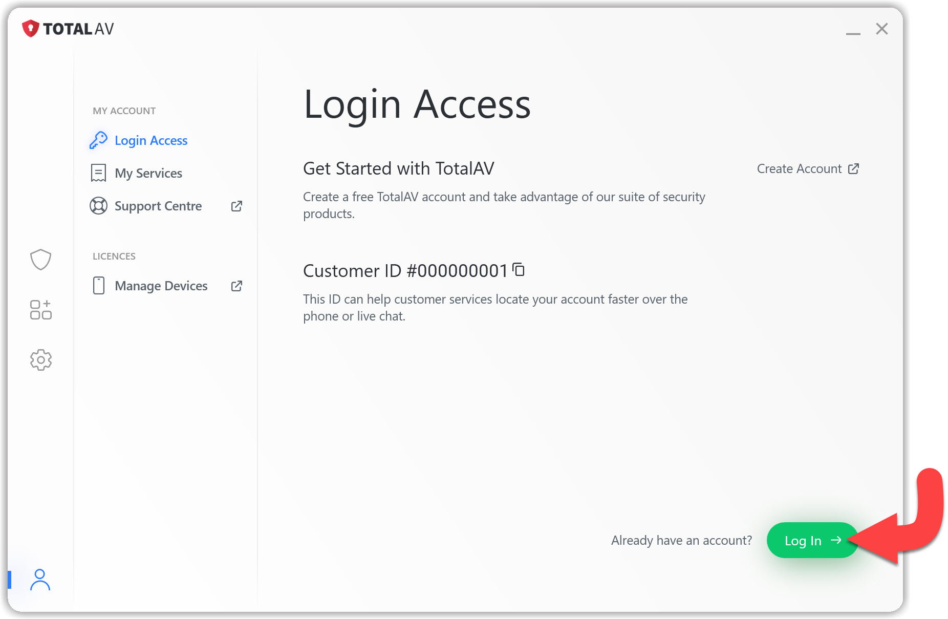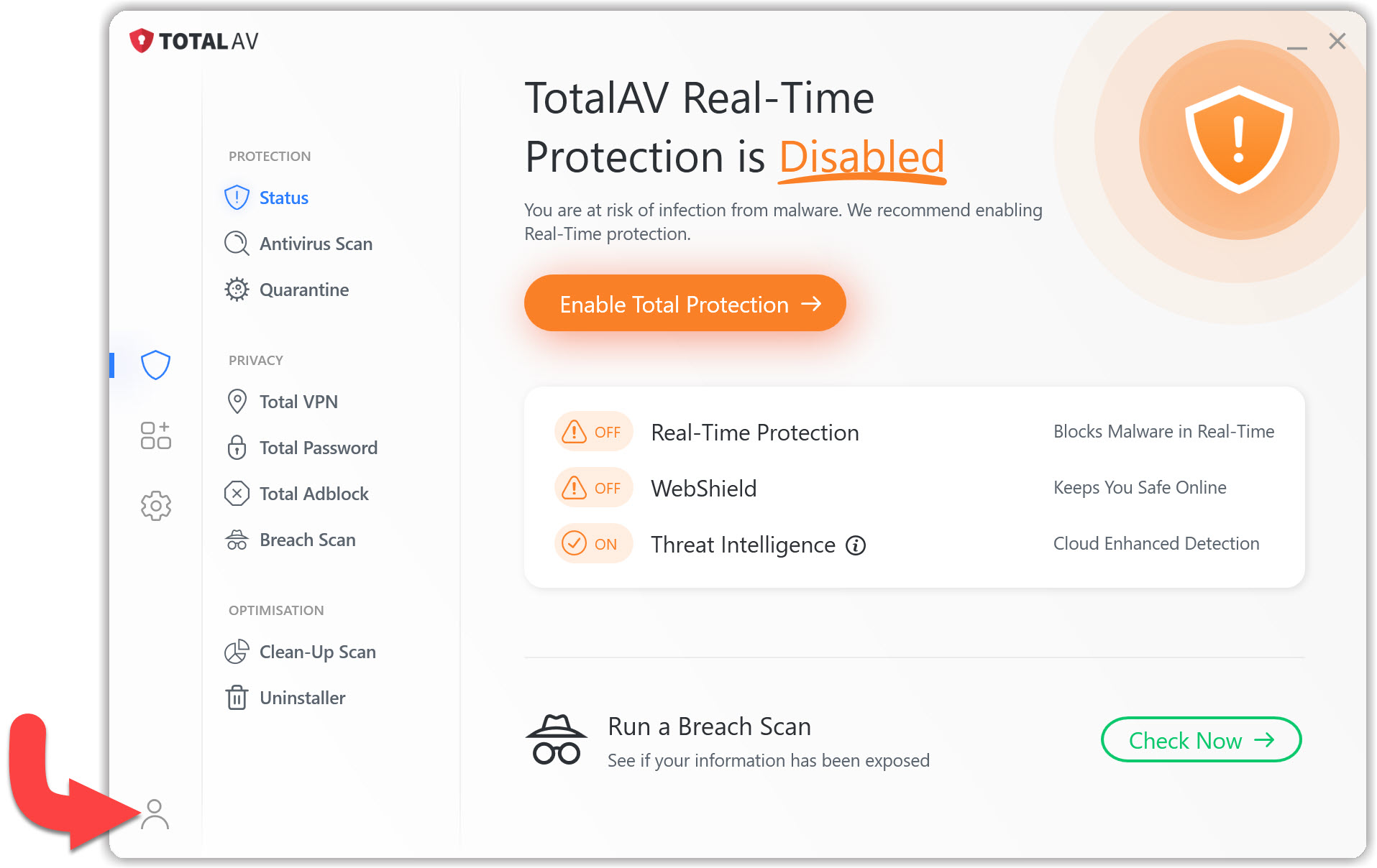 Vaya a la parte inferior izquierda de la aplicación TotalAV y haga clic en el ícono Mi cuenta.