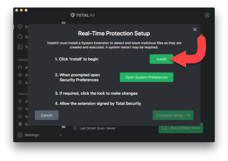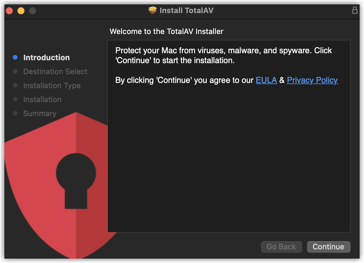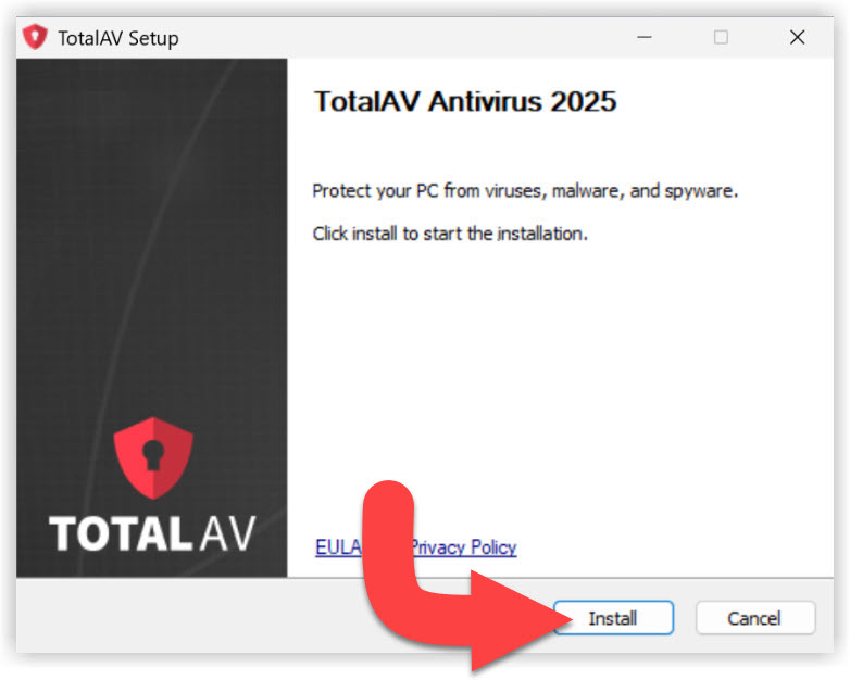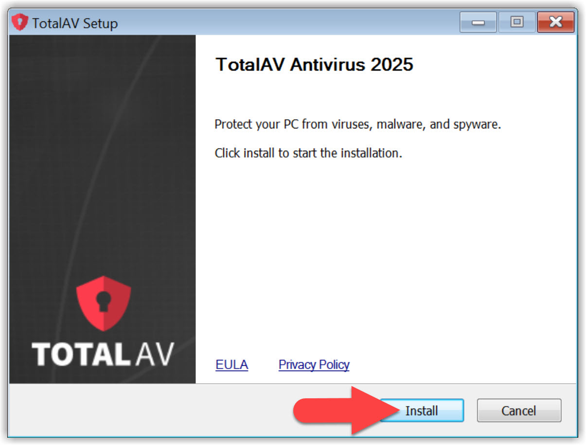 När installationsfönstret för TotalAV öppnas klickar du på Installera.