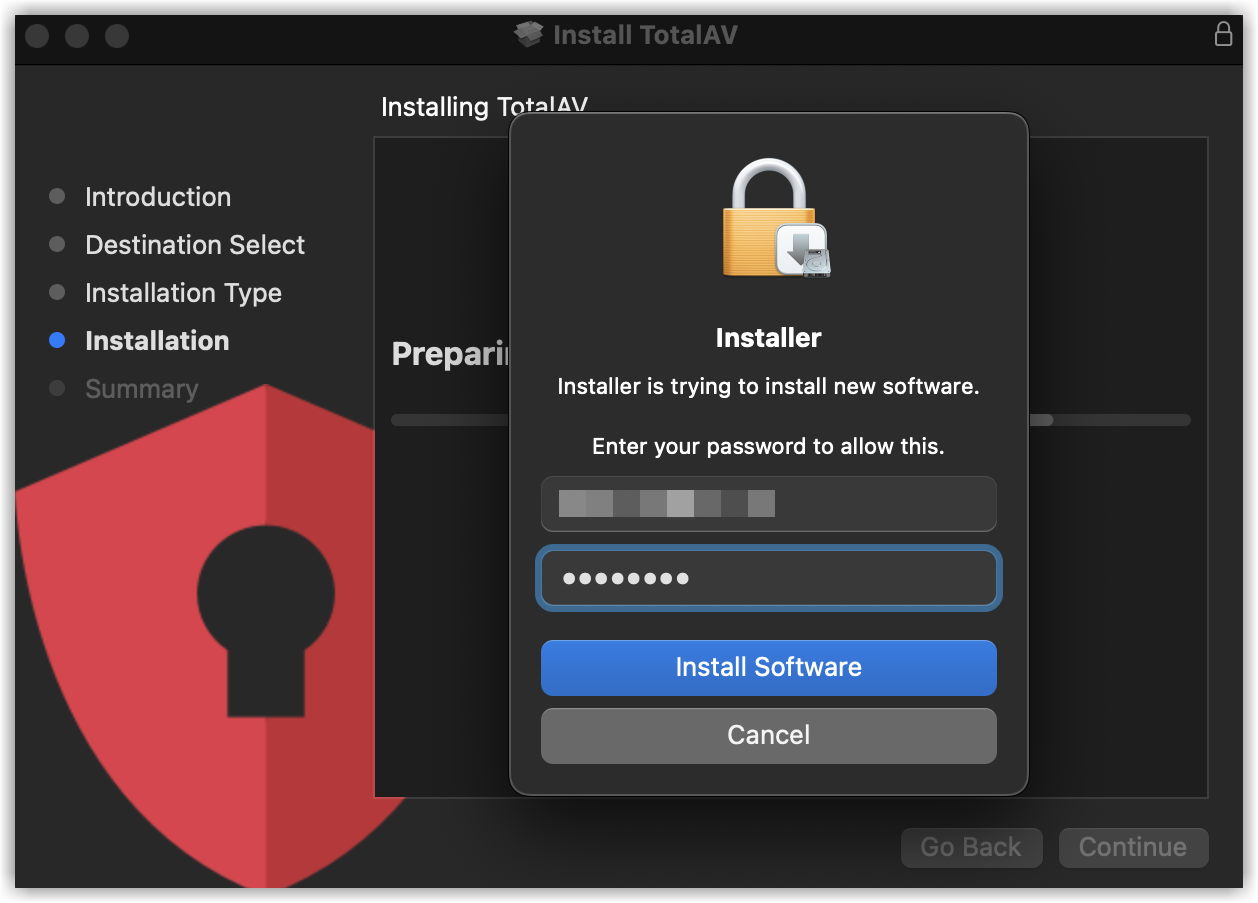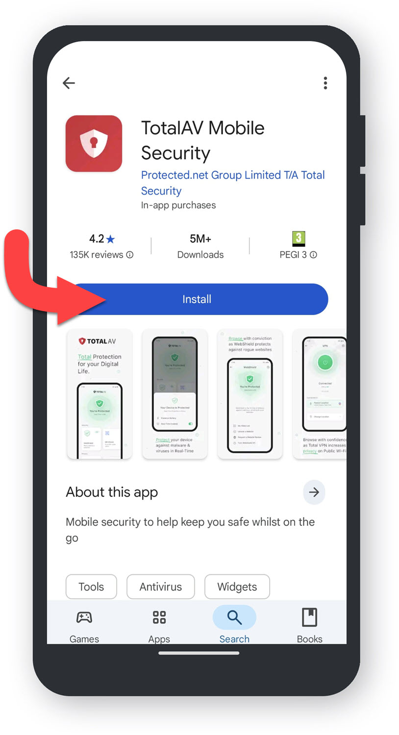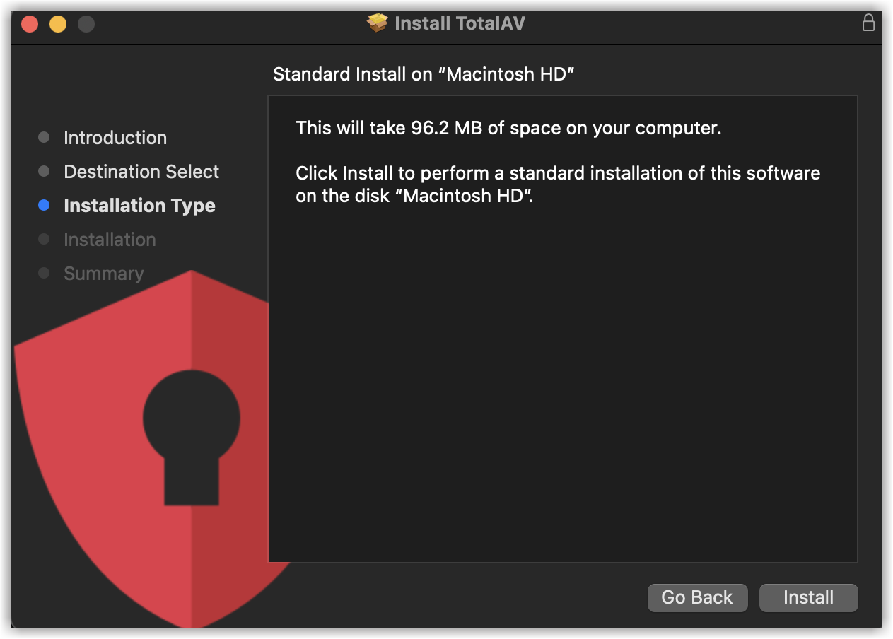 När installationsfönstret för TotalAV öppnas klickar du på Installera.