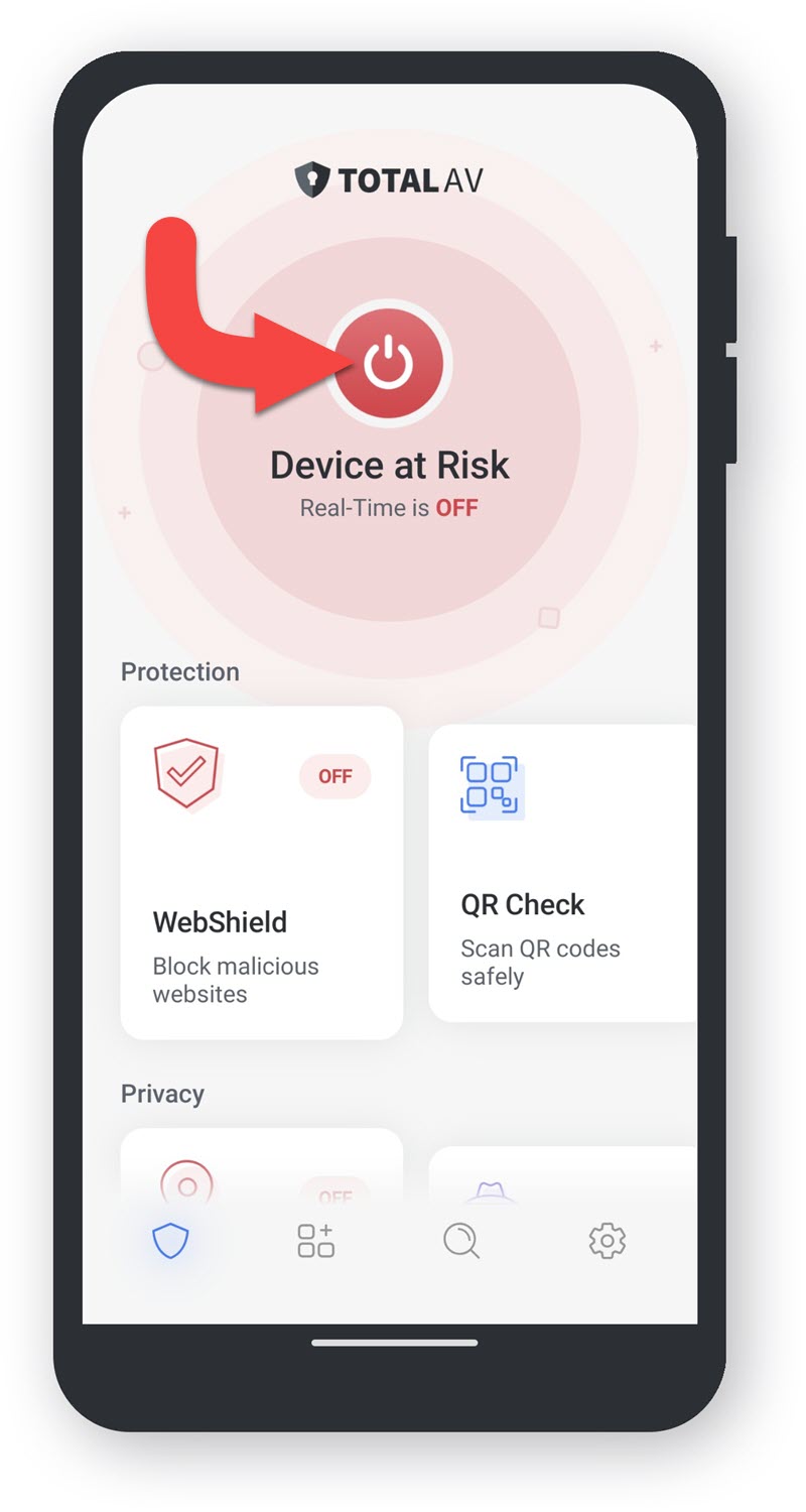 Under Säkerhet, leta upp Aktivera realtidsskydd och klicka på Växla® för att aktivera skyddet.