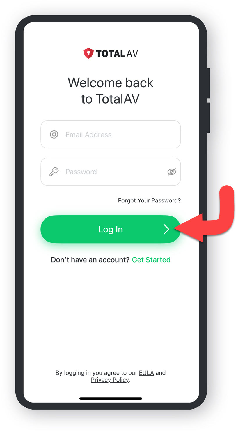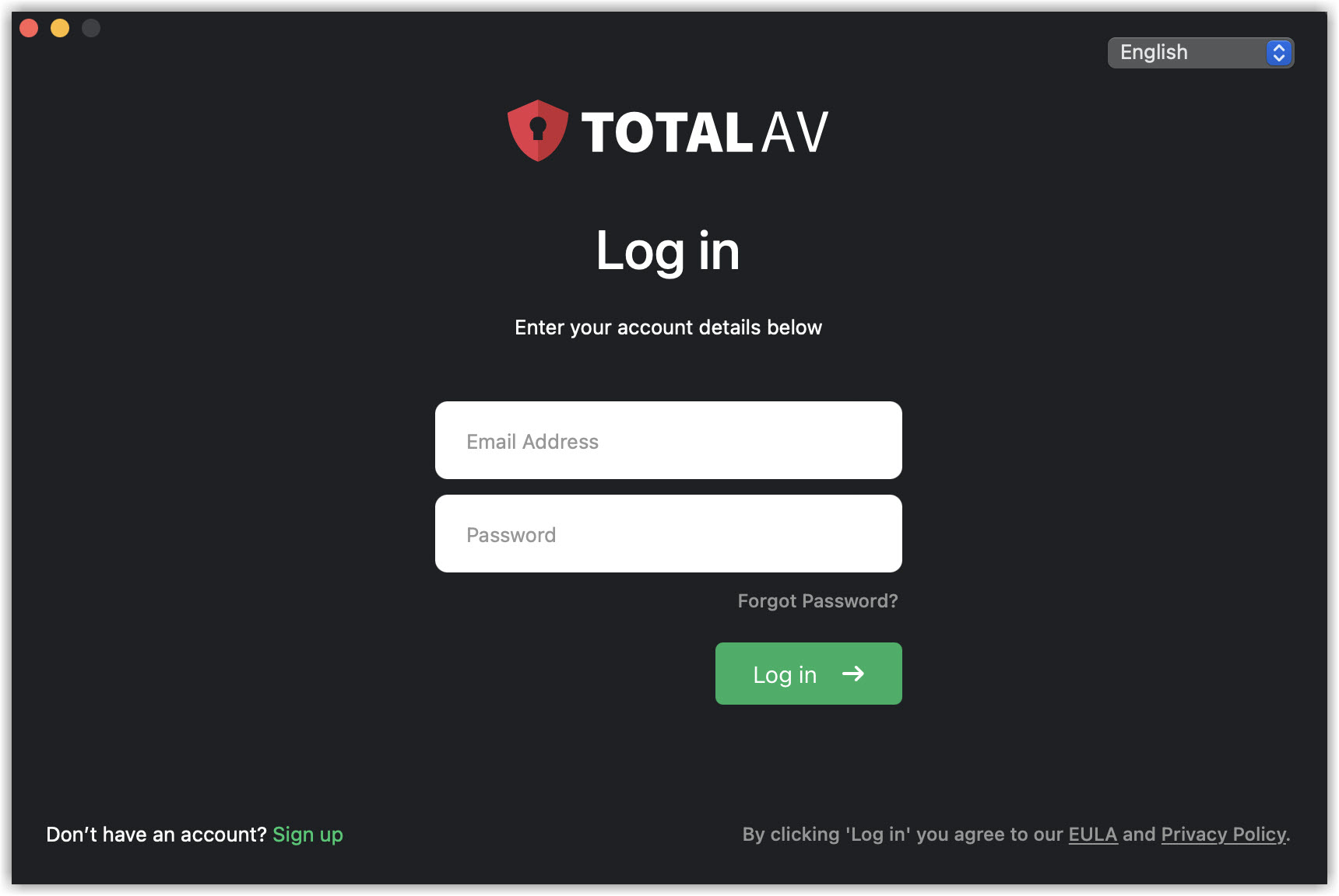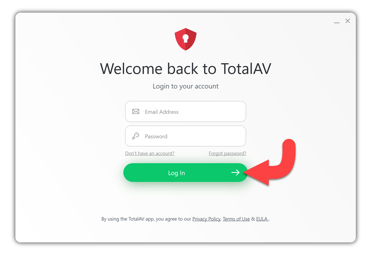 Ange dina TotalAV inloggningsuppgifter och klicka på Logga in.