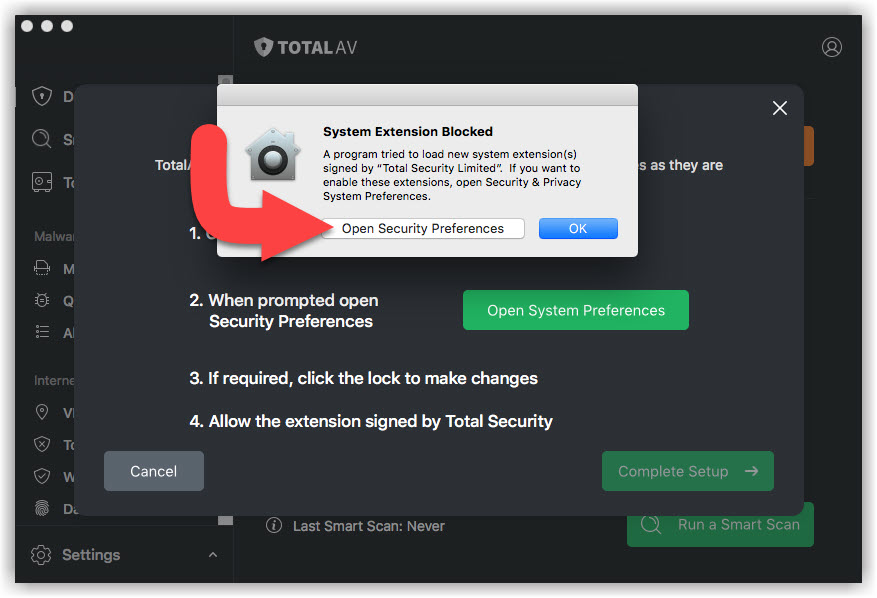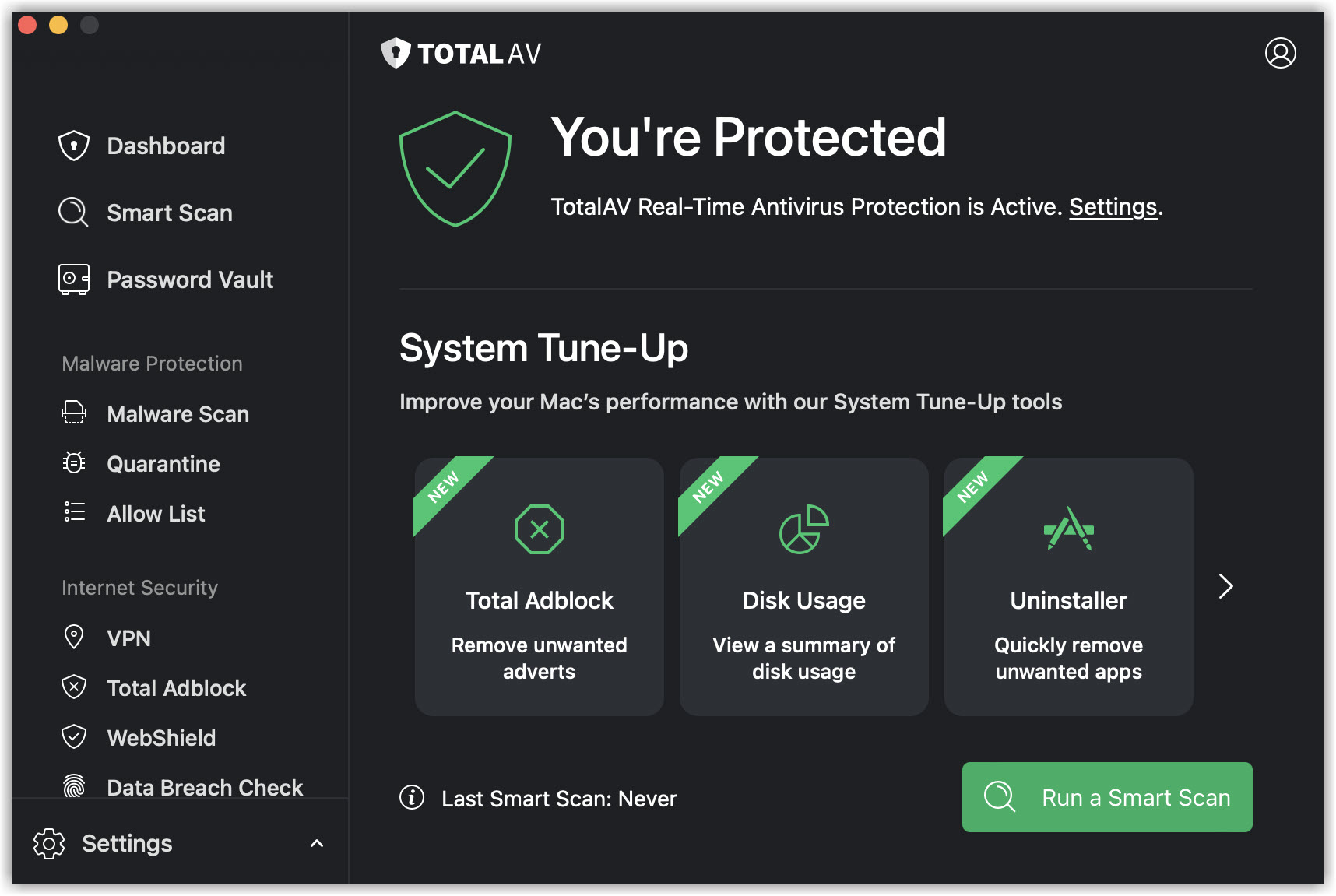 TotalAV är nu helt installerat. Klicka på Starta skanning för att börja skanna systemet. När skanningen är klar, gå igenom och åtgärda alla problem som TotalAV har upptäckt.