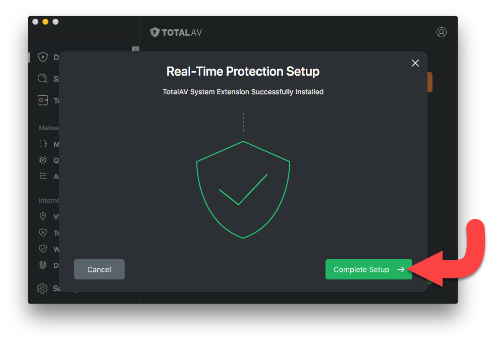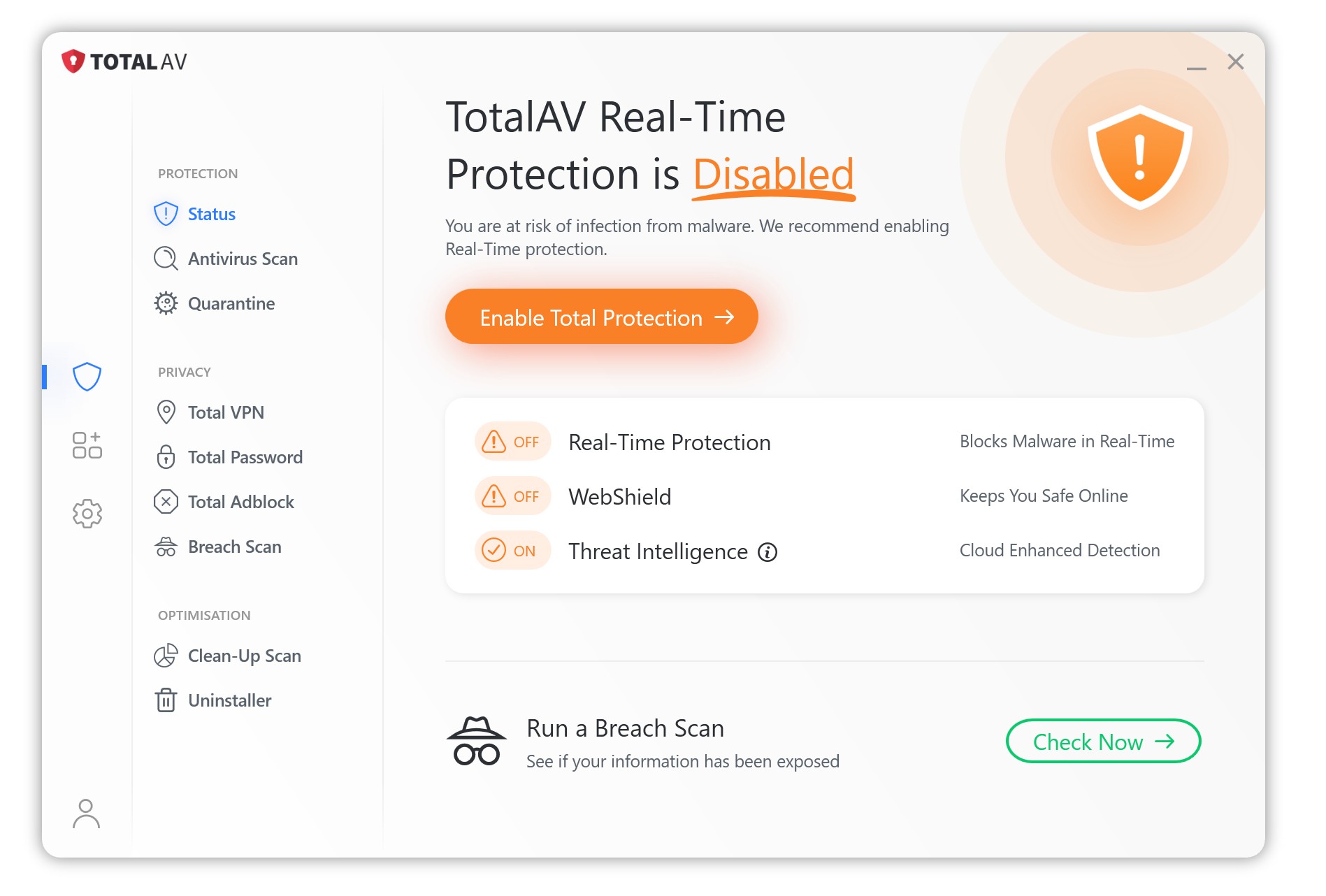 Realtidsskydd aktiveras några sekunder efter att TotalAV är helt installerat, eller så kräver det att du klickar på Aktivera realtidsskydd.